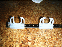 今まで、2つのブラケットを使用していたものを上段同様、 1つのブラケットにパイプ2本通して作成。 取り出しやすくなりました。 |